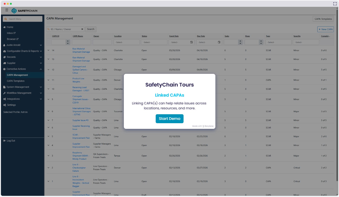 A new Linked CAPAs tab has been added to the CAPA slide-out, allowing users to link related CAPAs together. CAPAs can be linked or unlinked through a user-friendly panel and all linking activity is captured as part of the CAPA history. Linked CAPAs are also included in the CAPA Report for audit and review purposes.