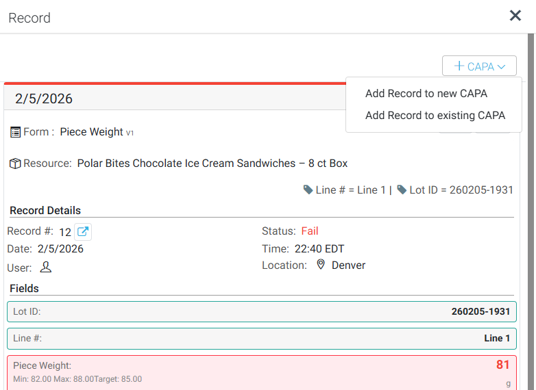 Creating or linking a CAPA directly from a Record eliminates the need to switch contexts, re-enter information, or manually cross-reference — cutting steps out of workflows that teams run every day.
