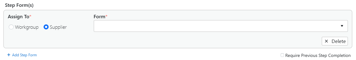 When building a SCAR Template, users can now configure Step Forms for external (supplier) Tasks. Users can choose whether the Assignee of a Task is a Workgroup (internal Task) or a Supplier (external Task). Supplier-assigned Step Form definitions will result in a Task being distributed to the Supplier Portal when a SCAR is started. All external Tasks delivered to the Supplier Portal are Form Tasks configured with Questionnaire Forms.